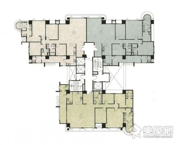 ↑↑↑平面圖:A區為95坪,B區為98坪,C區為104坪。A、B面為中正路,C區面對的是花園。