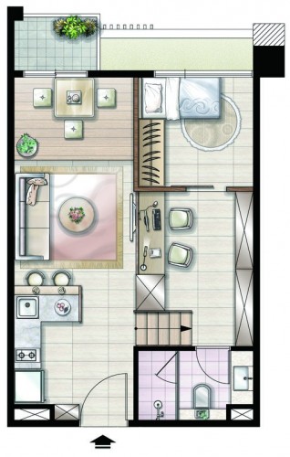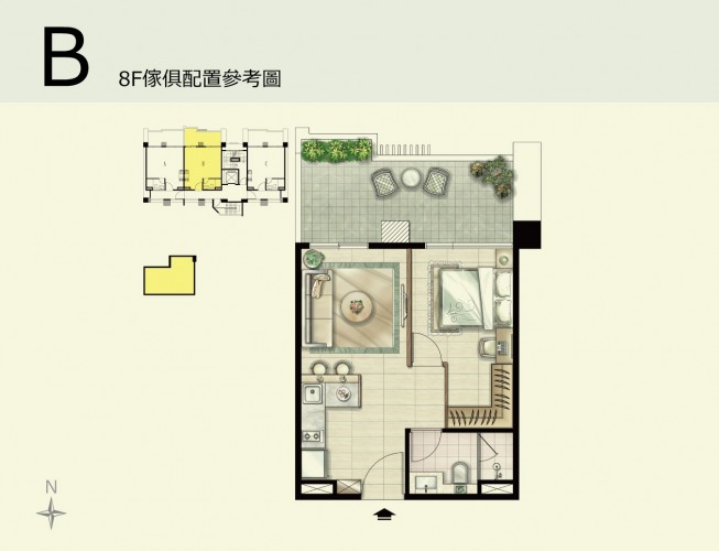 ↑↑↑頂樓露台戶格局規劃:此為18坪的隔局。