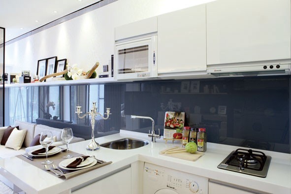 ↑↑↑廚房:為三米高度。客、餐廳及廚房開放式的設計讓空間有無限延伸感。