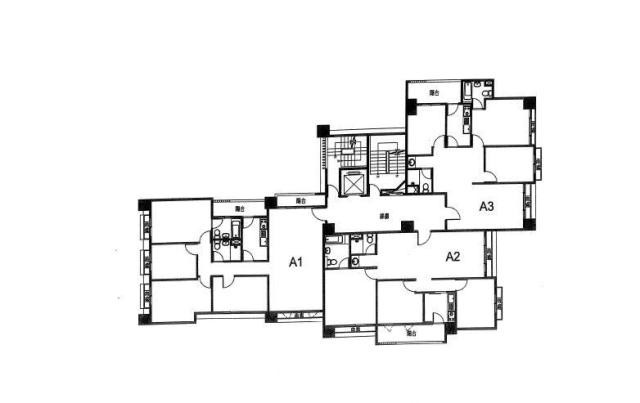 ↑↑↑一層的隔局分配平面示意圖:A1為55坪、A2為45坪、A3為43坪。