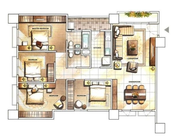 55坪的隔局的四大房坪數適中且平均,每間房間幾乎都能放入雙人床或書桌。絲毫沒有發生為了充房數而勉強擠出小房濫竽充數的問題。