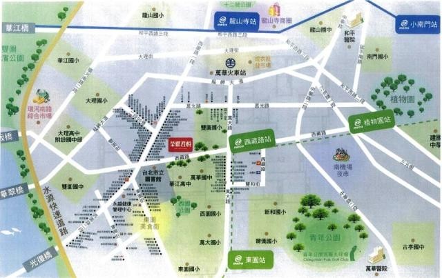 是的?!隨處可見的綠意美景及一路上將近十所的淳樸學風,是否顛覆你對艋舺的印象?電影中的兄弟、風化區及頹圮的建築完全被剛眼前的景像給取代了。以往,我們只管窺了萬華的其中一角,但大家口中的萬華其實比想像中還要包羅萬象。過去的萬華在歷史的腳步中停佇了,但追趕時代的步伐卻從過停止。在這兒,找尋歷史的蹤跡,公車一站後的龍山寺可以踏訪古跡;若欲趕上現代豪宅的軸線,尚有107年完工的萬華車站雙子星BOT案。未來,榮耀君悅就在捷運西藏路站。傳統、現代集結於一身卻毫不衝突,這就是所謂艋舺的精神。