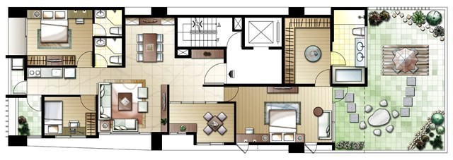 ↑↑↑A戶1樓平面圖:為38坪三房二衛。