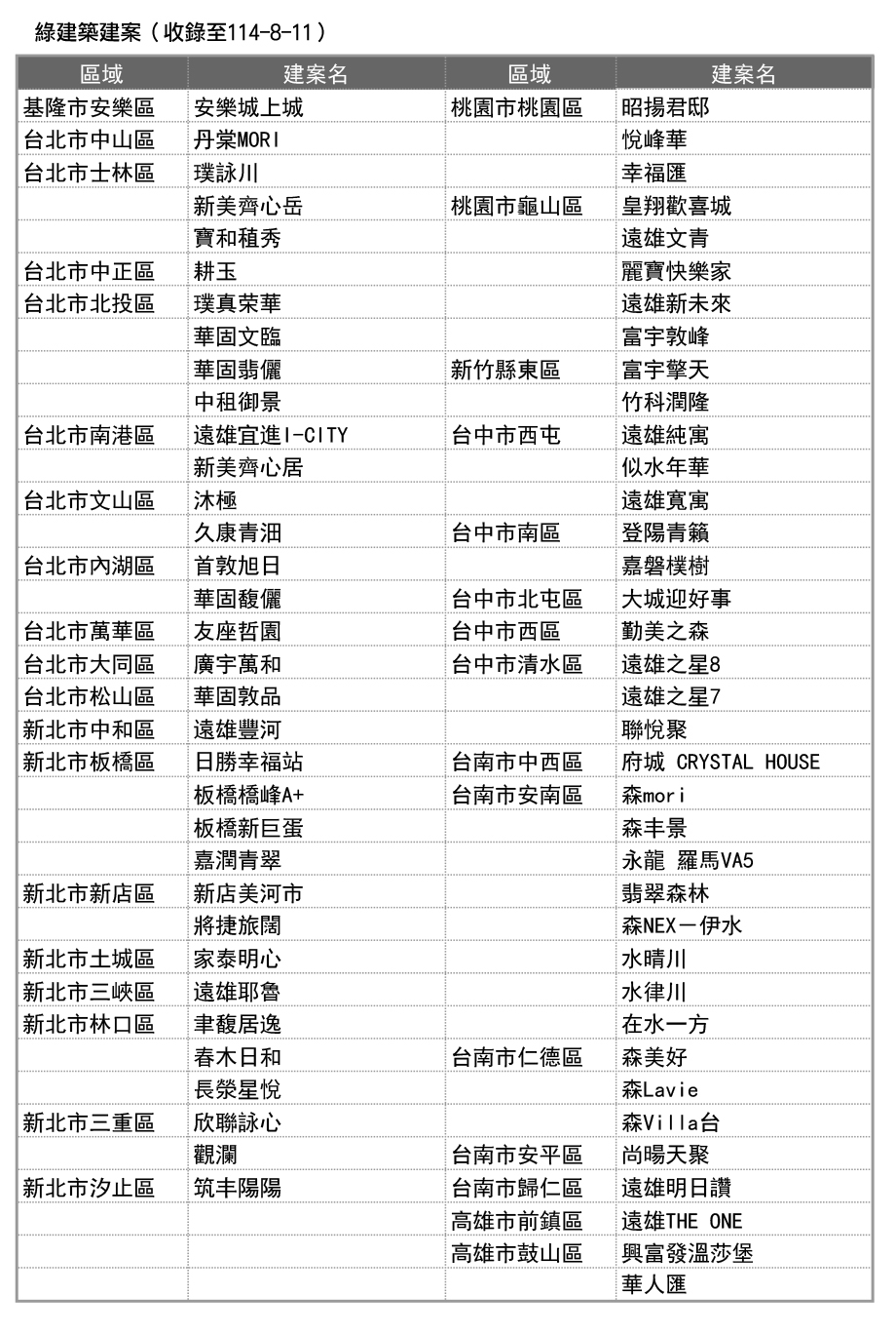 1. 認證級別:確認綠建築標章或建築能效評級。