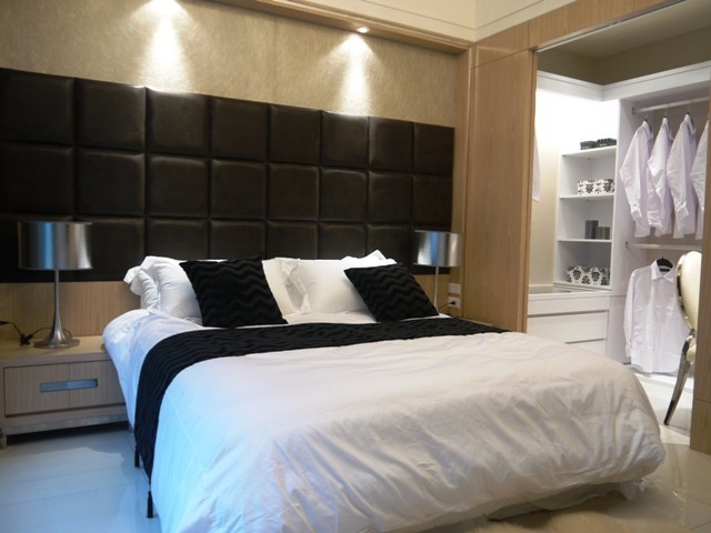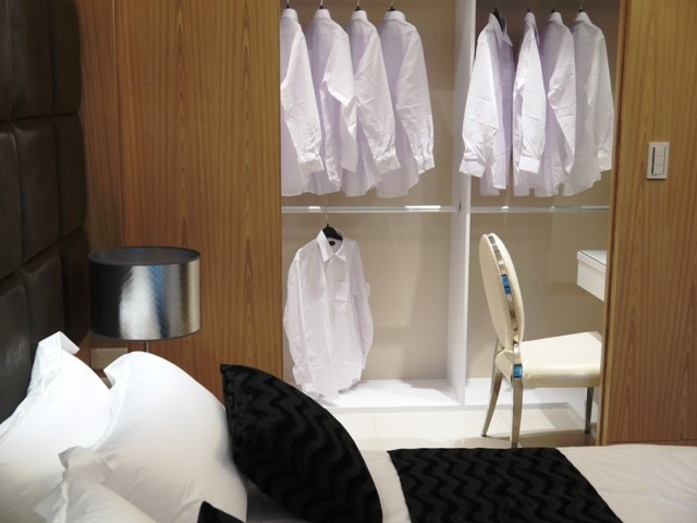 ↑↑↑主臥房左側的更衣間及一個化妝區,將更衣、化妝劃為一整個區域,強調臥房的休憩區域。