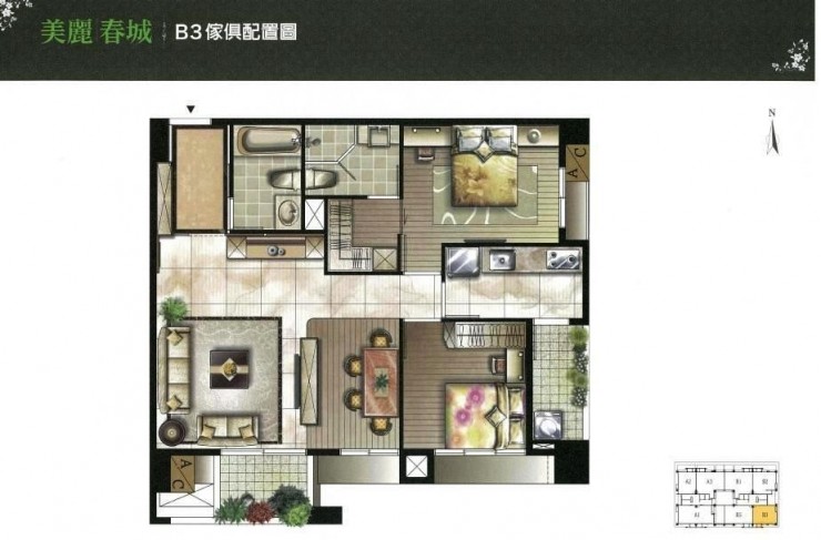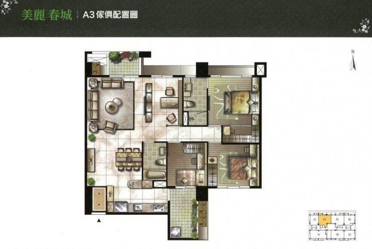 A3戶:48坪4房隔局 。