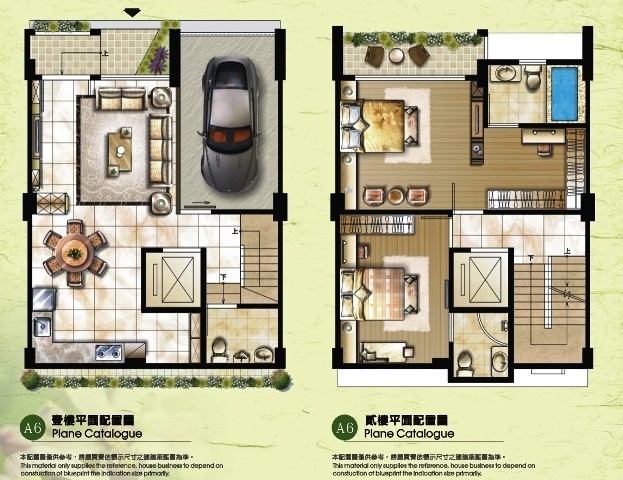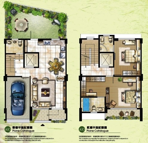 如上A2及A6為前面無庭院設計,而以下的A10的一樓則多了庭院空間。