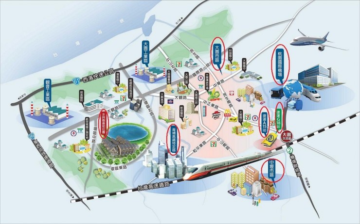 位於桃園大園的「水與樹」,名副其實就是個360度環繞水與樹的自然綠宅。 從大園交流道下來,沿著核心商圈的中正東路、大觀路一路往下開約莫7分鐘即可到水與樹建案現場。水與樹建案居於桃園航空城、大園市場、捷運A15站、青埔高鐵特定區…等重大建設之內。雖然建址附近沒有熱鬧的商圈但卻能充分享受靜雅的生活環境。到市區只要開車幾分就可到達,完全比照國外住商分離模式,但車程距離卻僅需數分鐘。