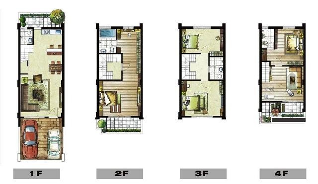 隔局介紹:前院可停雙車位、氣派挑高3米6的客、餐廳加廚房。其前院停車位臨路條件寬敞,所以幾乎每戶方便可停2-4部車,解決找不停車位的問題。二樓整層大主臥為父母房,有前陽台及主臥專屬衛浴設備,其浴缸還是降板式按摩浴缸,讓主人辛苦工作一天回到家還能享受泡湯的樂趣。3樓為2個寬敞房間,中間的衛浴間附有spa淋浴柱。4樓是專屬為年輕夫妻所設計規劃的小天地,前有陽台、小客廳及一間套房,等於又是一間整層大主臥,超完美的別墅格局規劃,稀有的雙整層大主臥設計,是目前市面上稀有的透天別墅,讓老.中.青三代可各自擁有整層的居住隱私空間。