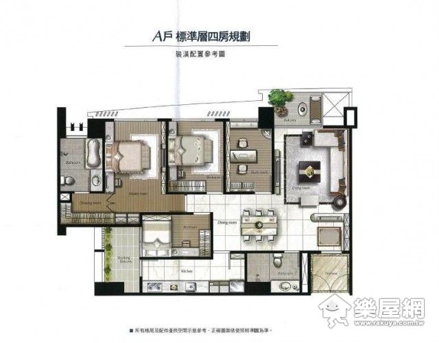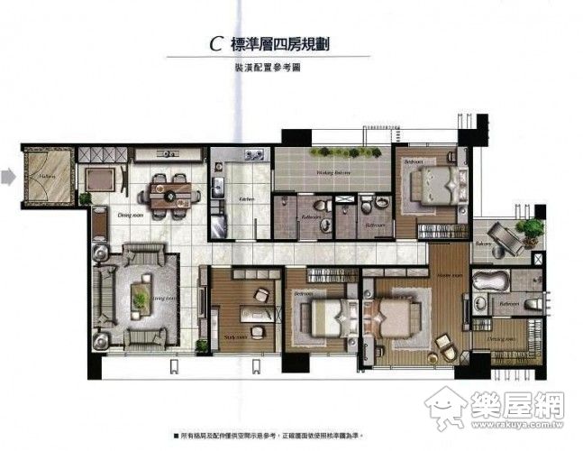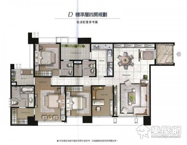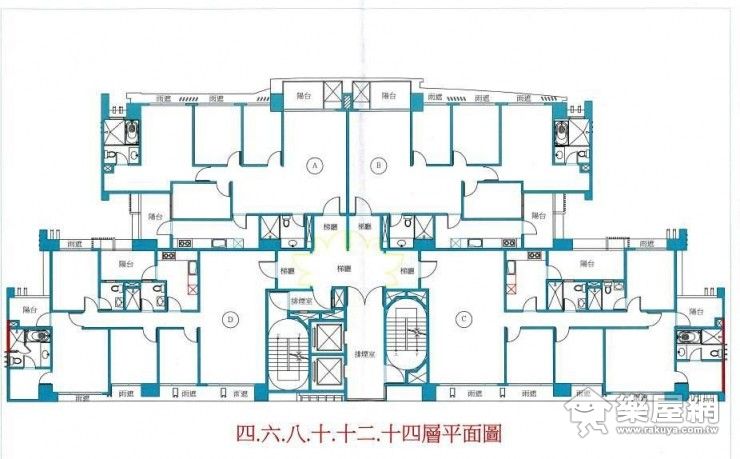 以下為A~D戶的平面隔局規劃圖。每戶四房都是為方正四房同時,許多買家忌諱的樑柱內露問題,吉美悅河特此樑柱外移到邊綠,除了不占室內規劃空間外,也能避掉房間內壓樑的風水問題。(不過,目前尚無實品屋,無從看起。所以有意選購的捧油們~~,這點提供大家做參考,但實際還是以實品屋為主)