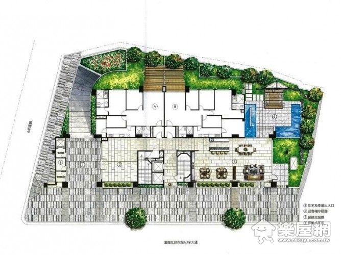 ↑↑↑一樓平面圖:1樓只有2戶。其餘為大廳、交誼廳、庭園等公共空間。