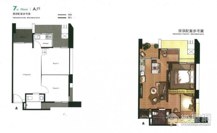 現在,要介紹的是7樓A戶的室內隔局。在28~30坪的空間內,運用挑高的設計產生空間錯覺,讓20多坪有翻倍的空間感。其中,客廳有3.6米高、房間最高也4.2米高。比起多數挑高建案客廳只有3米,足足多了將近半米之多。再者,LIVING MORE挑高設計特別注意管線、糞管的妥善配置,不會讓你一抬頭就是混亂的管線或有視而可見的糞管。從下面配置圖得知,大門一進來可以看見客、餐廳,而在客廳後面第一間為次臥房、再來為主臥房,而臥房的後方還有一個書房區。雖然小坪數但卻可使用到2+1房的實用空間。