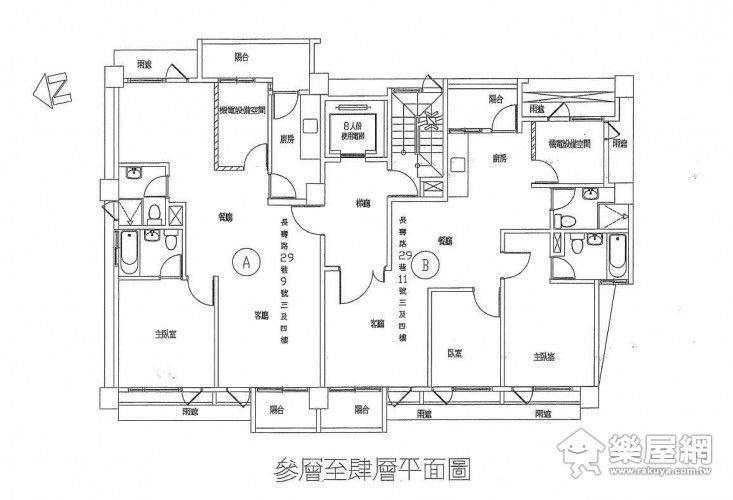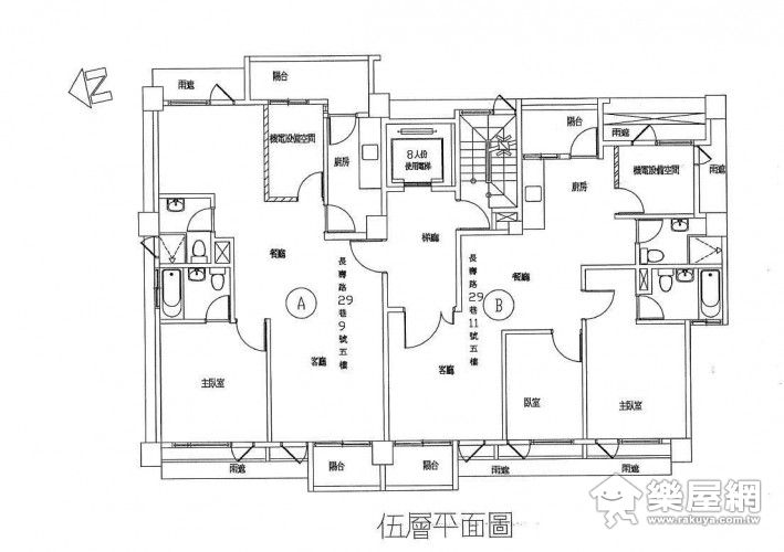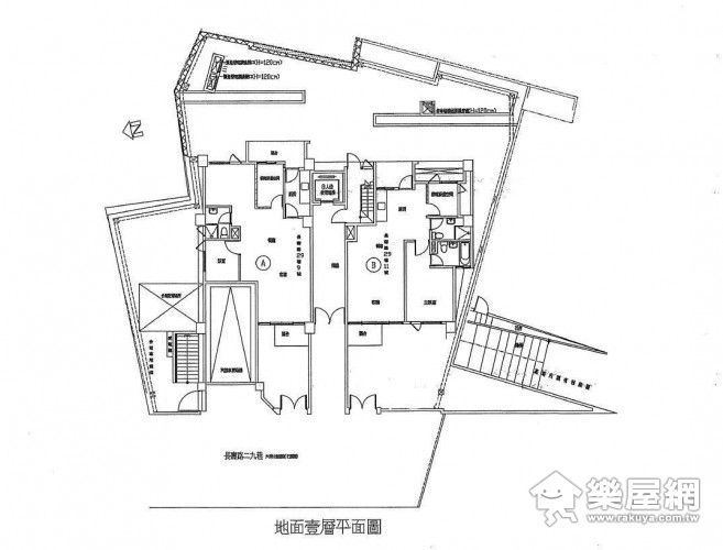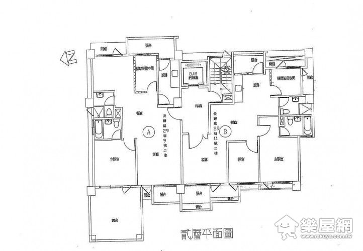 ↑↑↑2樓平面圖:從2~5樓A戶為39.61坪、B為38.94坪