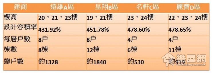 ↑↑↑四大建商樓高、每層戶數、容積率、總戶數一覽表