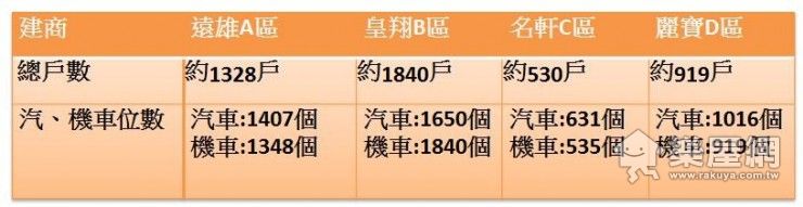 ↑↑↑四大建商汽、機車停車位一覽表