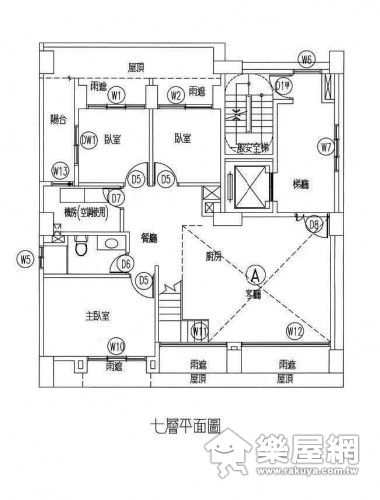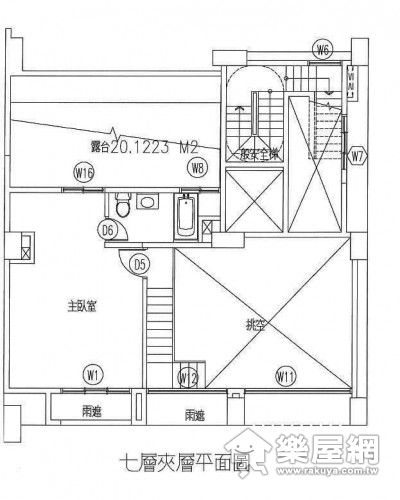 7樓為樓中樓,樓高為5.8米,上下兩層都是2.9米高度。坪數稍比3~6樓大一點,為48.12坪四房的規劃。