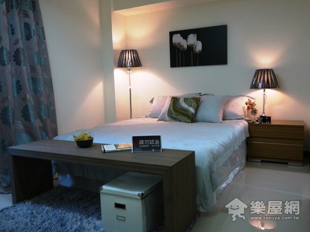 位在面對餐桌左側方的主臥房,你現在看見只是她的三分之二空間。前方還有三分之一的地方還有擺放一個小沙發哦!