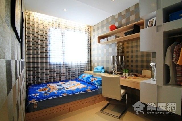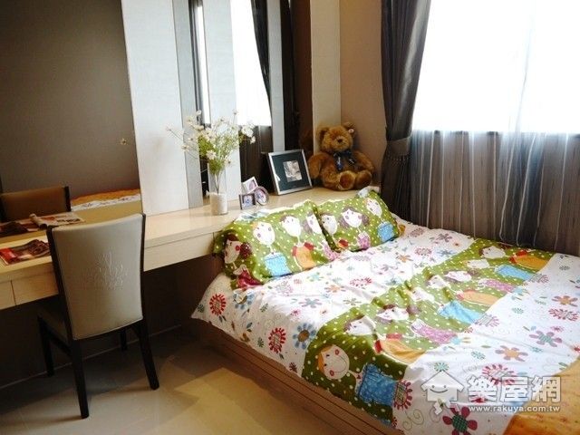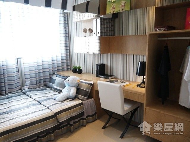 左側第一間房,這間雖然不是主臥房,但擺放雙人床、書桌,甚至還有多餘的收納。空間使用上綽綽有餘。