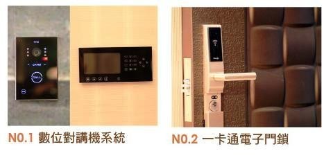 數位門禁系統有彩色影像攝影監視門口狀況,數位對講機系統讓居家安全更有保障。同時,大門的感應式電子智慧門鎖系統,除了有效增強安全性,更結合悠遊卡、大樓門禁卡、電梯控制卡,達到一卡通的管理。