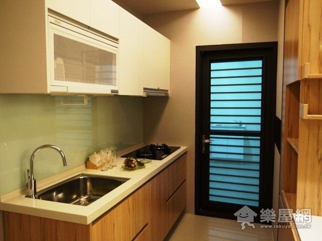 ↑↑↑廚房(廚房瓦斯爐旁即為通風小陽台。陽台擺放的洗衣槽及升降式曬衣架也是標準配備哦!)