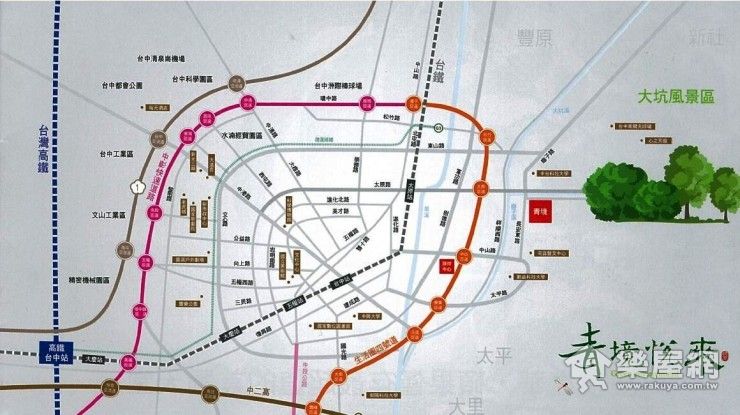 ↑↑↑台中市整體發展格局:從圖可發現,左邊為台中早期發展的重工業、港口區。偏中心點則為市政中心。青境悅來為目前新興開發區。