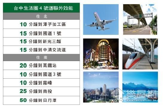 在生活圈四號道路之前,台中市發展多局限在中西部區域(如台中港、台中工業區、文山工業區…等),其開發區域也幾近飽和。但在生活圈四號道路開通之後,新興區則為生活高品質的北屯特區。離塵不離城,享有住宅品質亦有絕佳的生活機能。