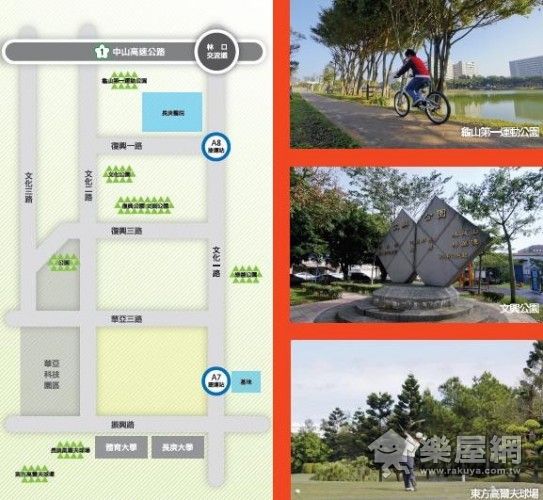 小編OS:一向以高綠覆率自豪的林口,雖然不能讓你如曹植七步成詩,但卻能讓你七步看綠景。公園超多的林口,加上是250公尺的台地,空氣清新是一大特色。(PS:目前建地還無綠地,還在整地之中~~。)