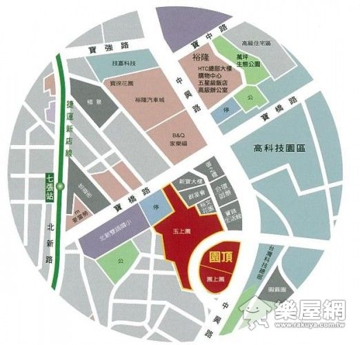 「圓頂2」就位在中興路與寶橋路交會的新店核心區域,步行5~10分鐘的生活圈內,集結了由HTC總部大樓、技嘉科技等高科技大廠所組成的高科技廊道,還有家樂福大賣場提供豐富生活機能。在交通方面,步行5分鐘可達捷運七張站,開車更只要1分鐘就可直上北二高新店交流道,更有裕隆集團耗資800億開發的生活城。新店已經不再是衛星城市,而是名符其實的自給自足新市鎮!
