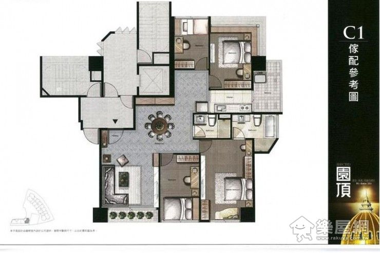 ↑ 55坪,四房兩廳兩衛平面配置圖。