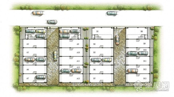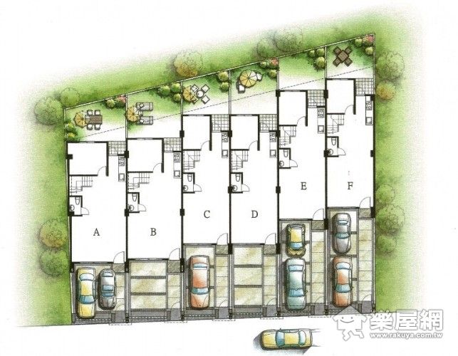 ↑ 六戶獨立的別墅設計,不但前院可以停車,還有後院可以休息乘涼。