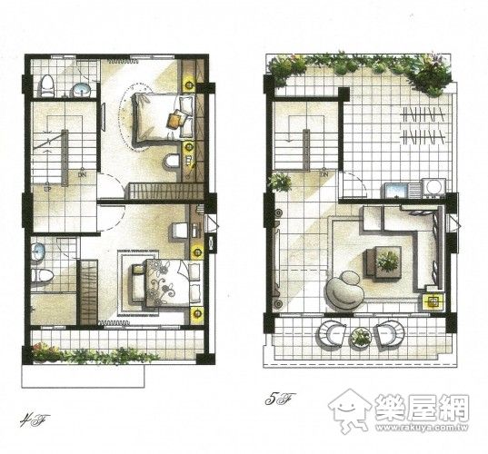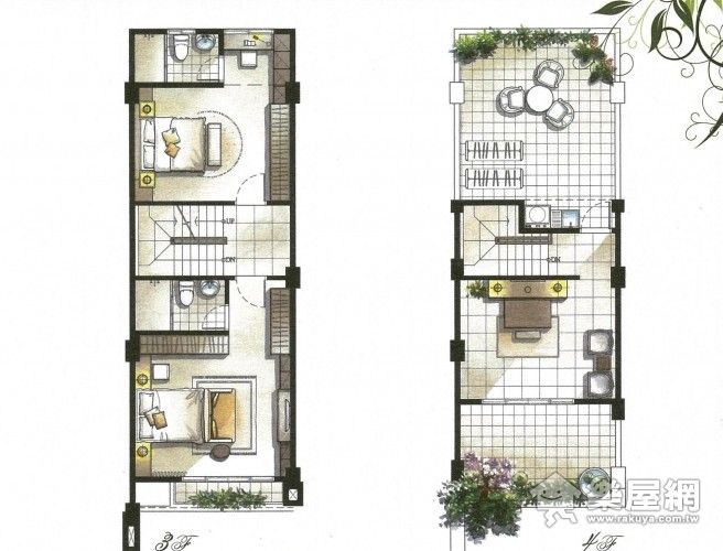 ↑三樓同樣也是套房式的雙臥室,四樓則是花園陽台。