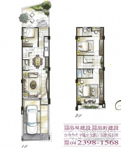 ↑ NO.8、9針對小家庭設計,樓高四樓,一樓是客餐廳與孝親房,二樓是套房式的雙臥室。