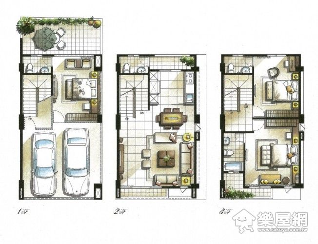 ↑ 幸福家大吉地NO.7,是前院停車的標準透天別墅設計,適合三代同堂。