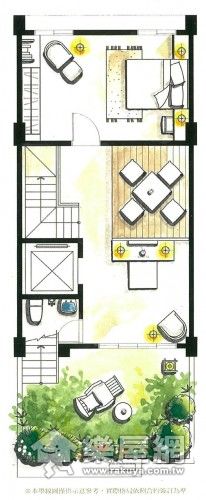 ↑ 五樓還有一間客書房,還有一個空間可以規劃為視聽室,然後前院又有一個大陽台,整個會不會太過分了~~六樓的頂樓空間,還有精美的花園造景,一整個舒適愜意的Villa風格,讓人好羨慕喔!