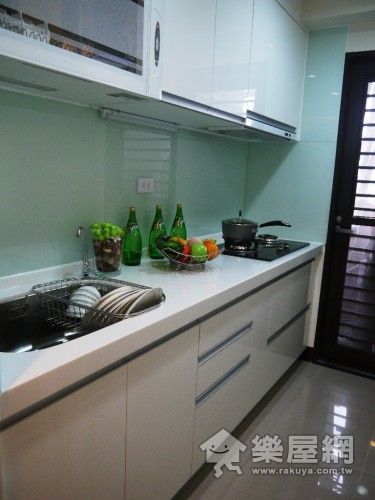 ↑ 長型的廚房,盡頭通往後陽台,有每一戶專用的逃生梯。