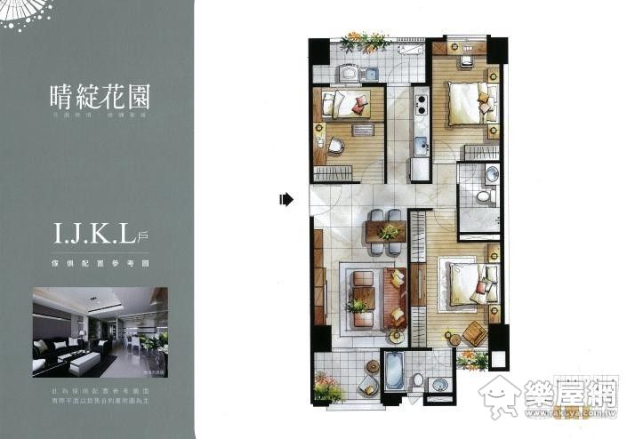 ↑ I、J、K、L戶平面圖,三房兩廳的設計。