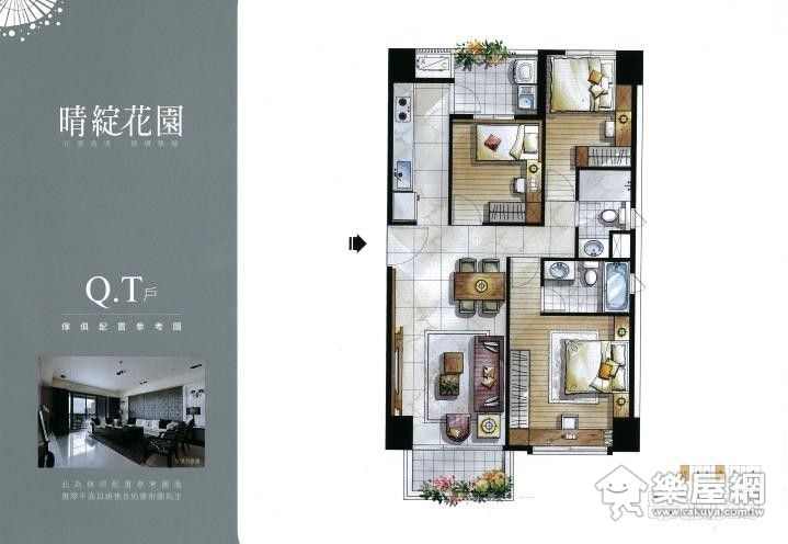 ↑ Q、T戶平面圖,三房兩廳的設計。