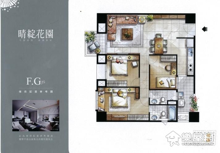 ↑ F、G戶平面圖,三房兩廳的設計。