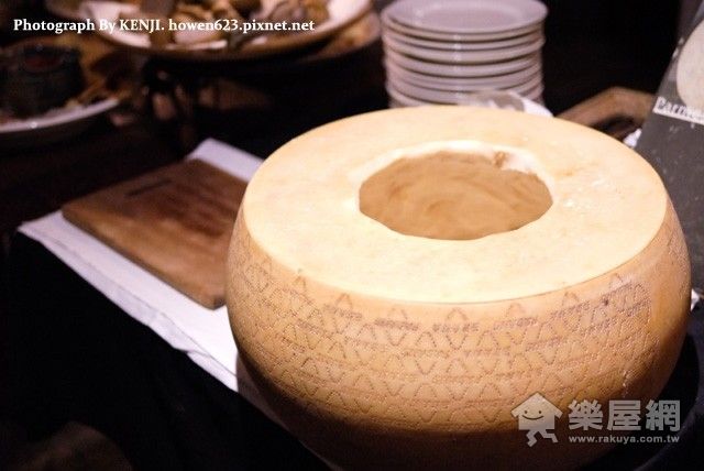 這個大到像輪胎= =" 的容器是什麼呢? 它是傳說中的帕馬森起司,藍洞很大方,你愛吃多少起司,