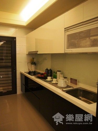 ↑ 長型的廚房空間擁有足夠的寬度,家庭主婦下廚感覺特別舒適,後方則是通往工作陽台。