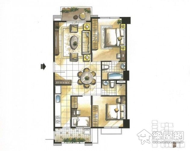 ↑ 客廳的格局方正、空間寬敞,後方還有一個精緻的半開放小書房。