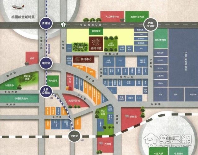 至中山高內壢交流道約5分鐘車程、桃園高鐵站約8分鐘車程、中壢火車站約10分鐘車程、距機場捷運A21站約3分鐘車程,近中壢市中心,加上中豐北路交流道設置,具交通轉運樞紐功能。周邊規劃以大眾運輸導向TOD規劃理念,並藉由整體開發方式,提供地區轉運、商業、住宅區等發展機能。