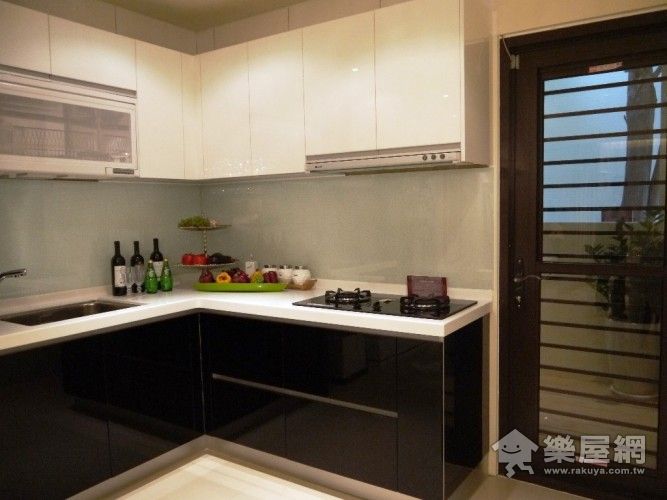 ↑ L型的廚房空間,讓活動空間寬敞加倍,後方則是通往工作陽台的門。