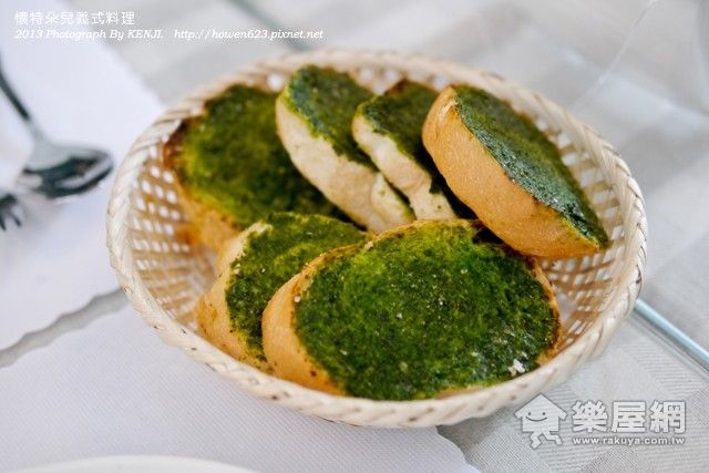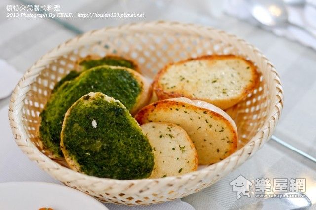 ▲前菜麵包來囉!青醬+蒜香口味的麵包,兩種我都有吃,都不錯吃!用料真得很實在~