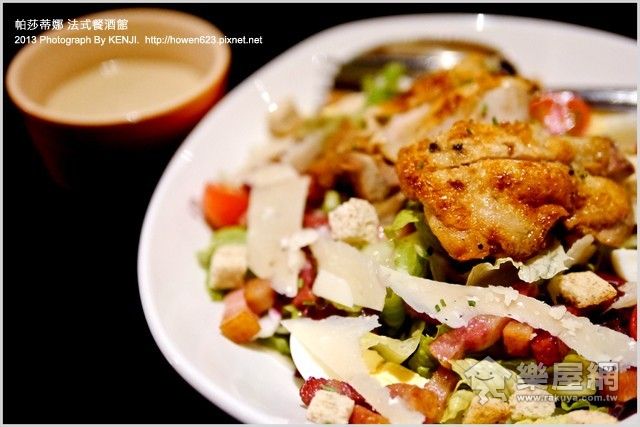 ▲前菜沙拉!我們選擇的是『煎烤香草雞腿凱薩沙拉』!這份沙拉還挺多料,也挺大一盤的,香草雞腿的味道很夠味,外層的皮很酥脆,裡頭的肉很嫩,還有肉汁在裡頭,一整個就是很新鮮!沾著所附的特製沙拉醬,超好吃^^