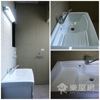 ▲ 廚房盡頭就是通往工作陽台的入口,比較特別的是建商贈送的這個工作水槽,竟然還有全陶瓷的手洗版,再加上上方貼心的照明設備,讓家庭主婦若有手洗衣服需求的時候,可以更加輕鬆方便。