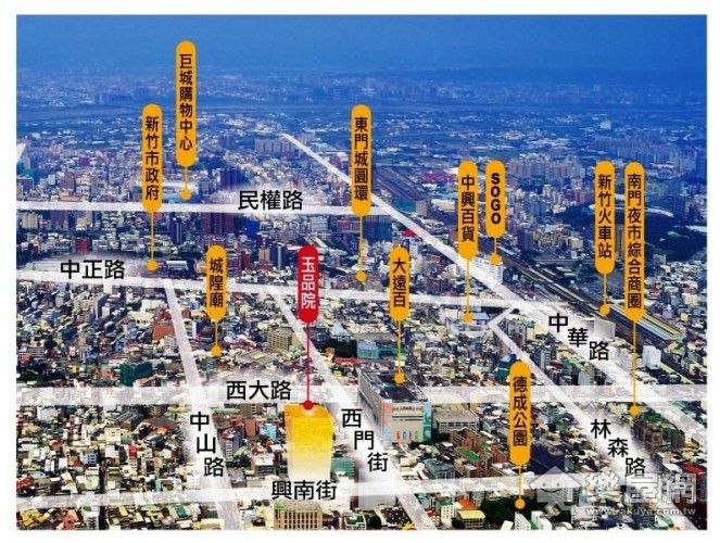說到新竹,大家一定會先直接聯想到好吃的新竹貢丸!是的,小編今天就要帶大家到新竹知名的海瑞貢丸……正後方的「玉品院」來瞧瞧,哈哈哈,貢丸是一定要吃,但是新建案還是要先帶大家參觀一下啦!從新竹火車站往城隍廟的方向走,沿著中山路直行,遇到興南街轉進來就可以看到我們的「玉品院」囉!