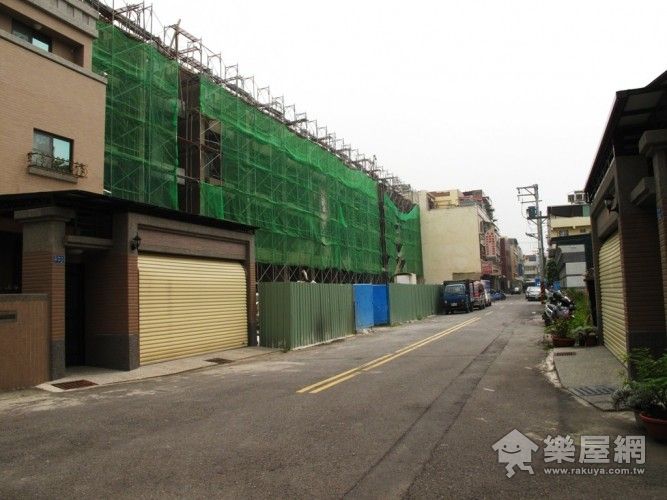 ▲仍在興建中的「海樂」建案,前方車道有8米深進出有餘。