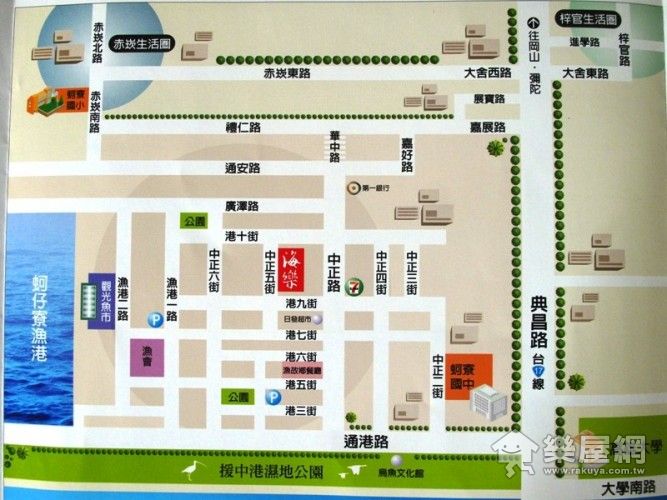 「蚵仔寮」,平時是一座靜謐的漁村港口,假日便可看見人聲鼎沸的觀光人潮,「海樂」則靜靜地隱身裡頭。先從台17線道左轉沿著通港路走,便能進入蚵仔寮的市區,週邊道路為棋盤式的規劃,讓人不至於迷失在巷弄間。向外拓展一日生活,可以有更多選擇,例如:援中港濕地、高雄大學、高雄都會公園、德民商圈或右昌商圈等,這些精采生活的區域都在距離「海樂」10分鐘車程以內的最佳選擇。