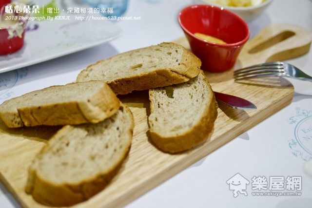 ▲手作麵包!還用造型類似洗衣板的板子來裝麵包,原本以為會是那種硬硬的麵包,但是這裡的不會耶!他的麵包烤的很鬆軟,再配上特製的沙拉醬,老闆~再送上一盤好不好!!!>"<